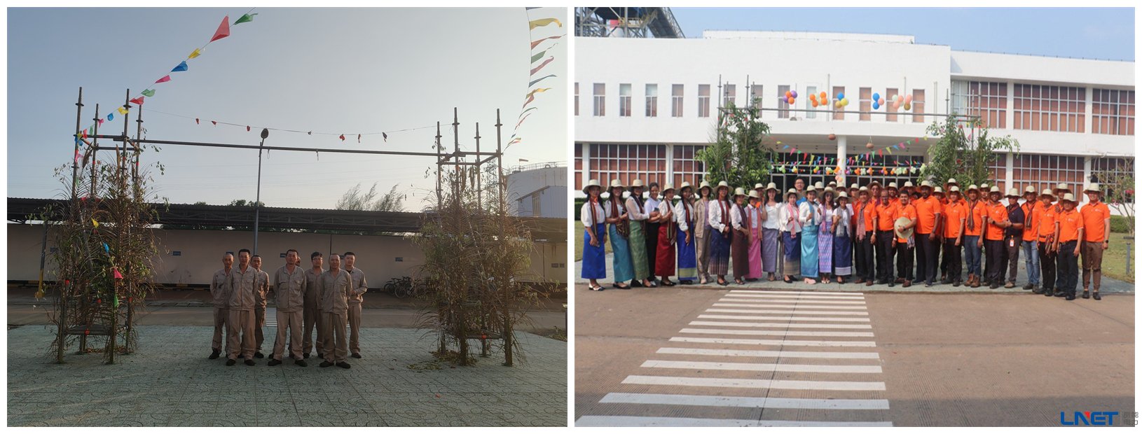 活动开始前,项目部中国员工同当地员工一起按照柬埔寨的传统习俗精心布置场地,准备当地特色食物。各式各样的气球、五彩斑斓的彩旗、编织的装饰物,以及象征吉祥的图案点缀其间,营造出浓厚的节日氛围。柬埔寨当地员工还介绍了他们新年的传统习俗和游戏,如祭祖、扫墓、拉拔河、丢安坤等,柬新年的庆祝活动丰富多彩,既体现了对神灵的敬畏,也展示了人们对和谐、美好生活的向往。