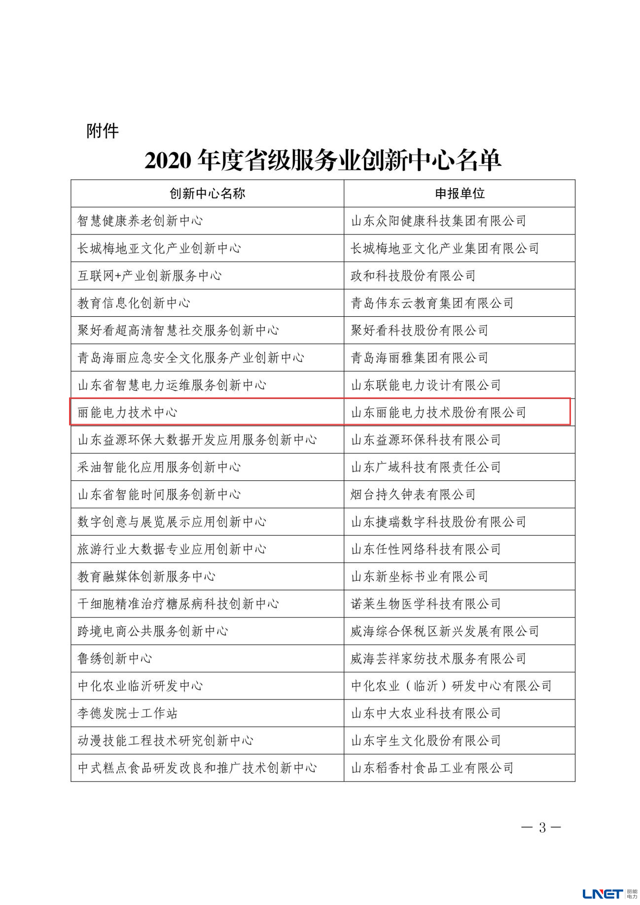 省级服务业创新中心-山东丽能电力技术股份有限公司