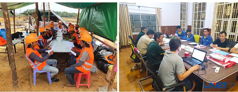 现场工作之余,参建员工积极学习充电,提高自身技能水平,定期进行安全培训提高大家安全意识。项目每周举行工作总结会议,对该周的施工情况、施工方法、存在问题等多方面进行沟通总结,通过交流弥补不足、解决施工中的困难,以确保下一周能够以更高的效率进行工程建设,确保柬埔寨变电站土建和安装项目能够快速保质保量完成,体现我们丽能人的风采。