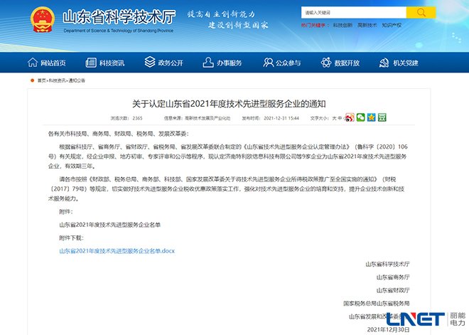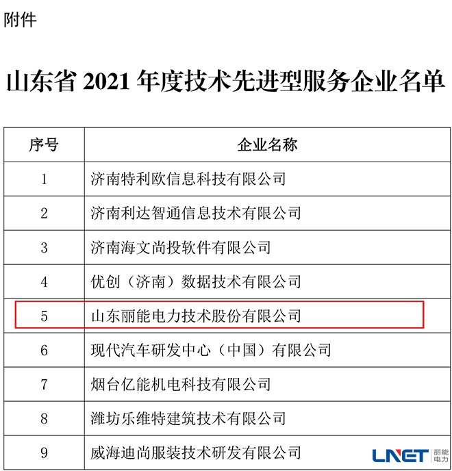 喜讯!丽能电力再次被认定为“山东省2021年度技术先进型服务企业”