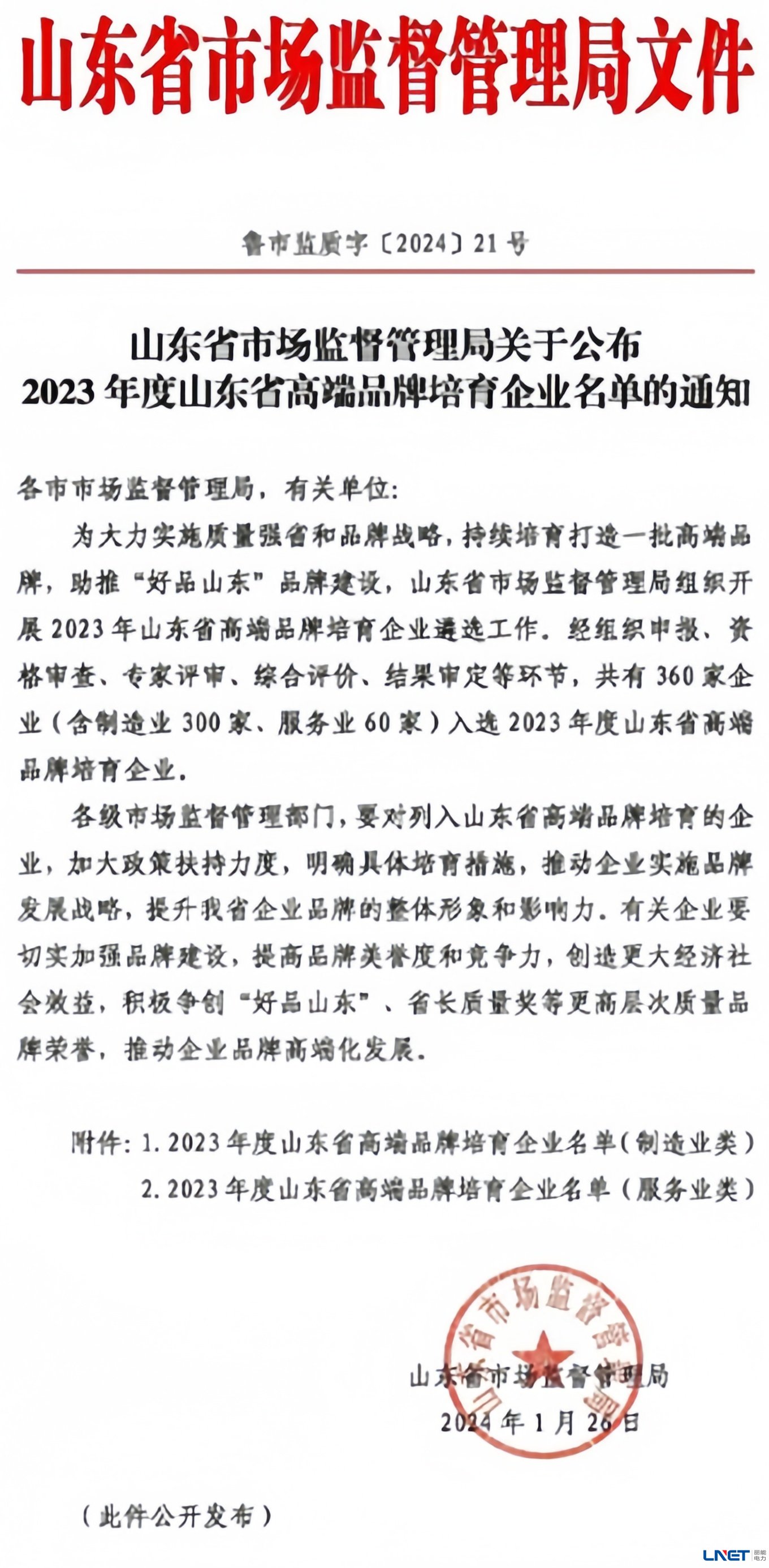 喜讯!入选2023年度山东省高端品牌培育企业