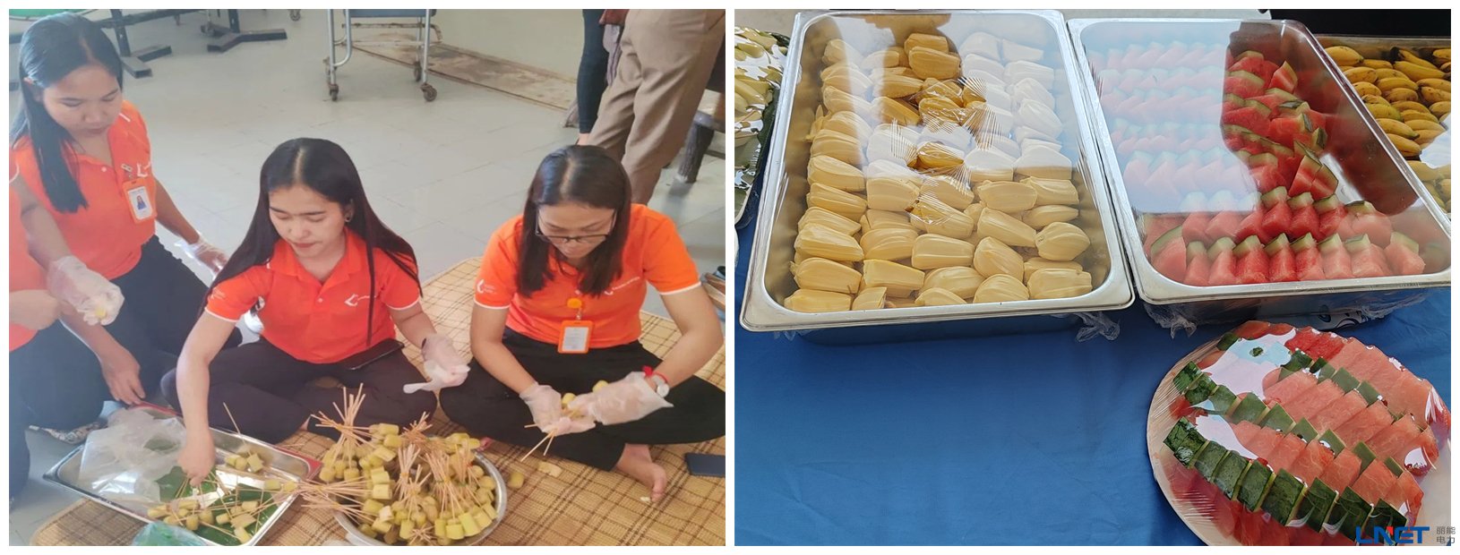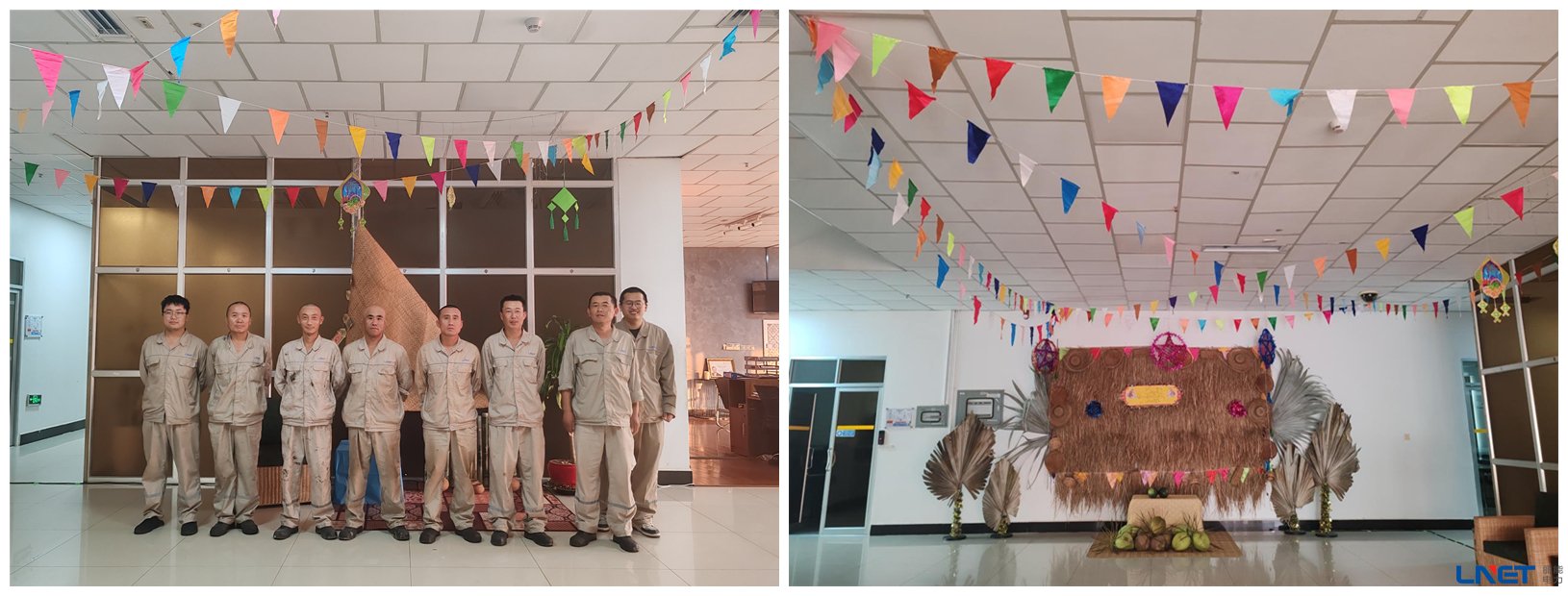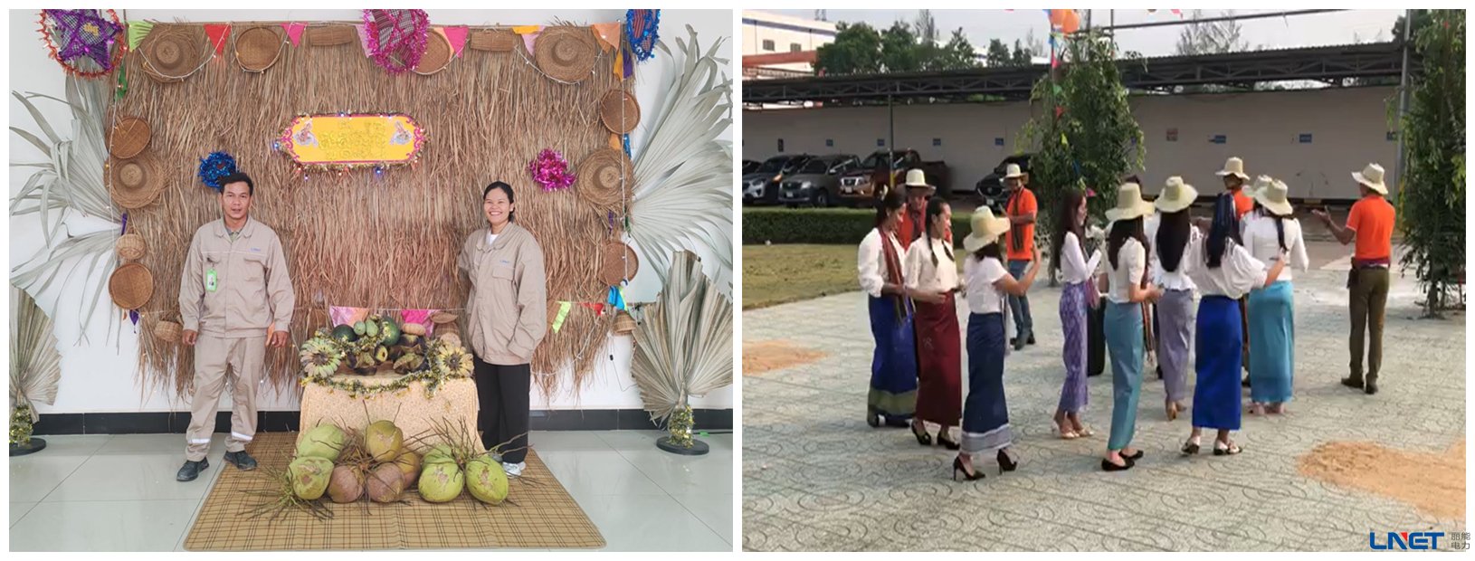 活动开始前,项目部中国员工同当地员工一起按照柬埔寨的传统习俗精心布置场地,准备当地特色食物。各式各样的气球、五彩斑斓的彩旗、编织的装饰物,以及象征吉祥的图案点缀其间,营造出浓厚的节日氛围。柬埔寨当地员工还介绍了他们新年的传统习俗和游戏,如祭祖、扫墓、拉拔河、丢安坤等,柬新年的庆祝活动丰富多彩,既体现了对神灵的敬畏,也展示了人们对和谐、美好生活的向往。