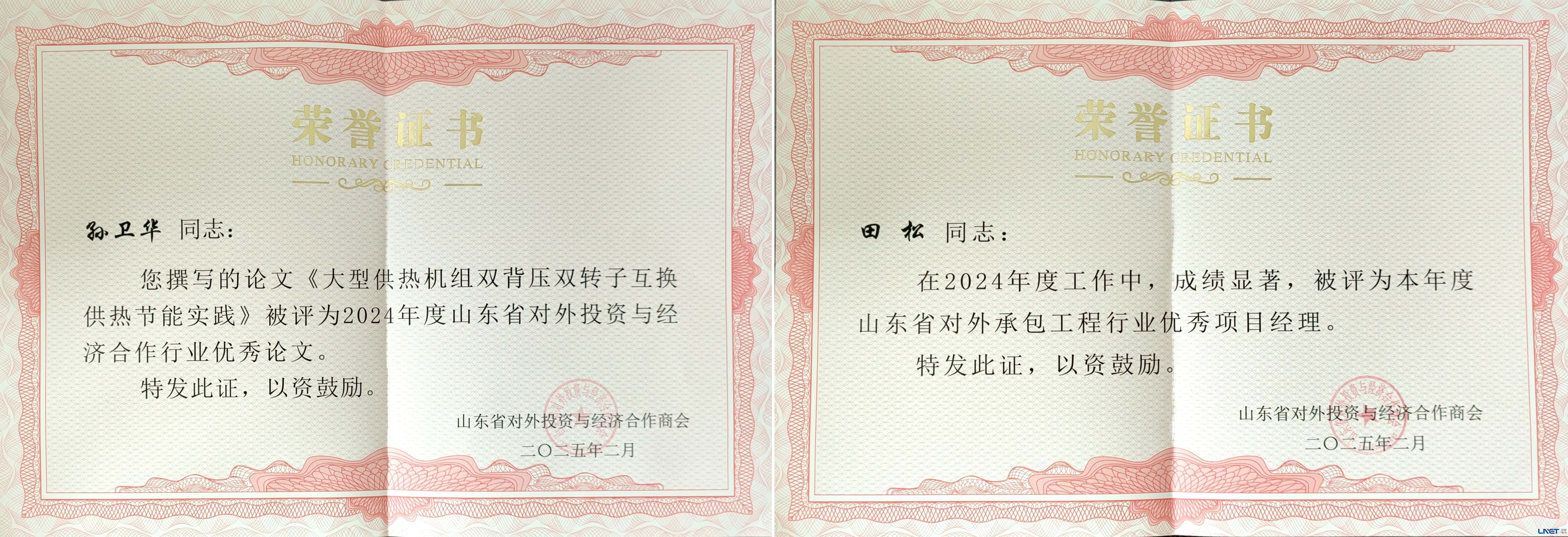 丽能电力荣获山东省对外承包工程行业优秀单位等多项荣誉