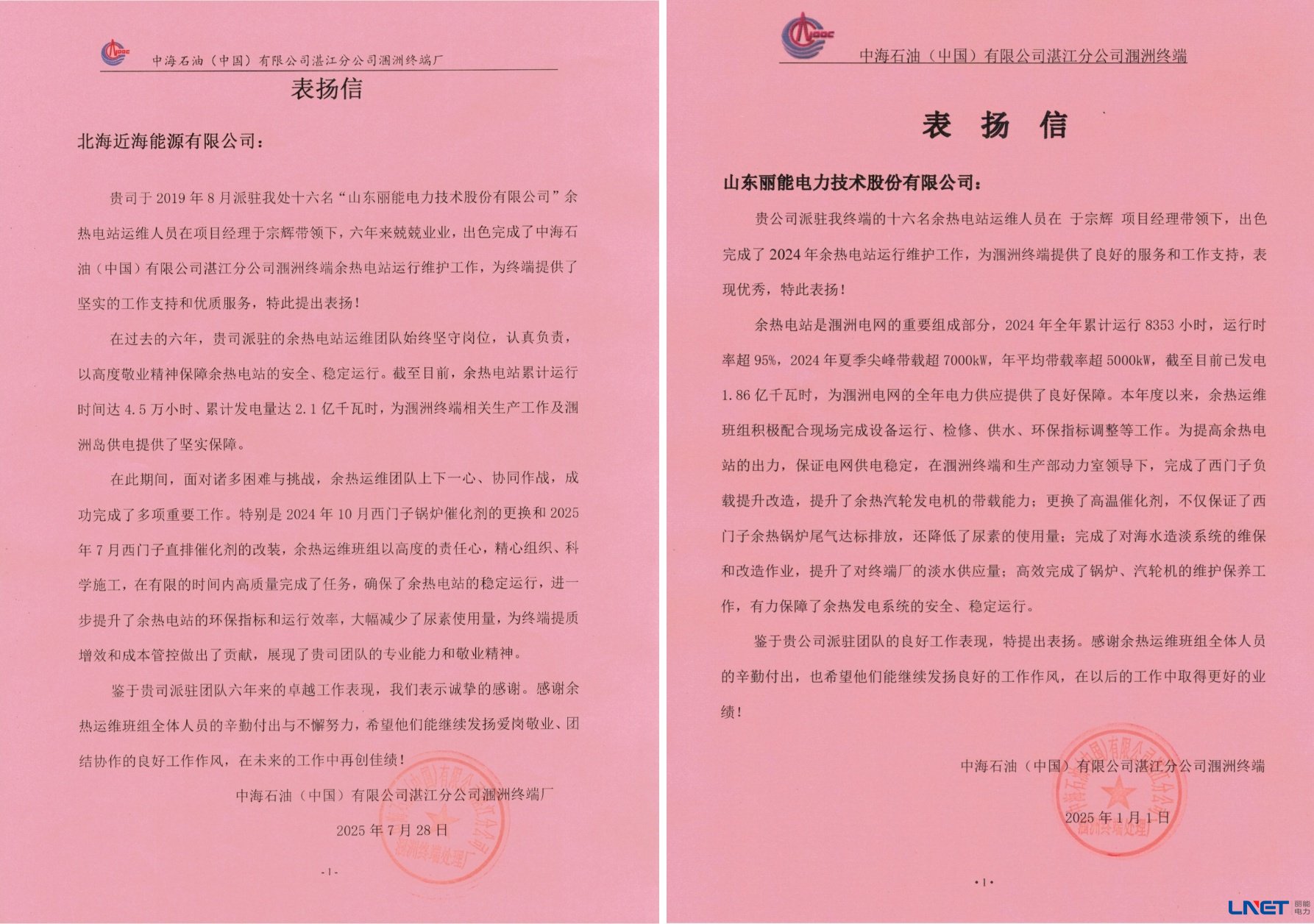 近日,山东丽能电力技术股份有限公司顺利完成中海石油(中国)有限公司湛江分公司涠洲终端余热电站为期六年余的运维技术支持服务。该项目自2019年3月3日启动至2025年8月11日圆满收官,为保障涠洲终端能源供应与绿色发展交出了一份亮眼答卷。