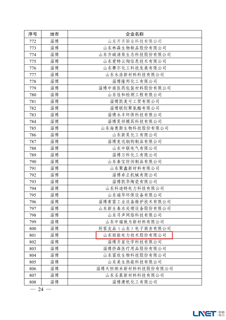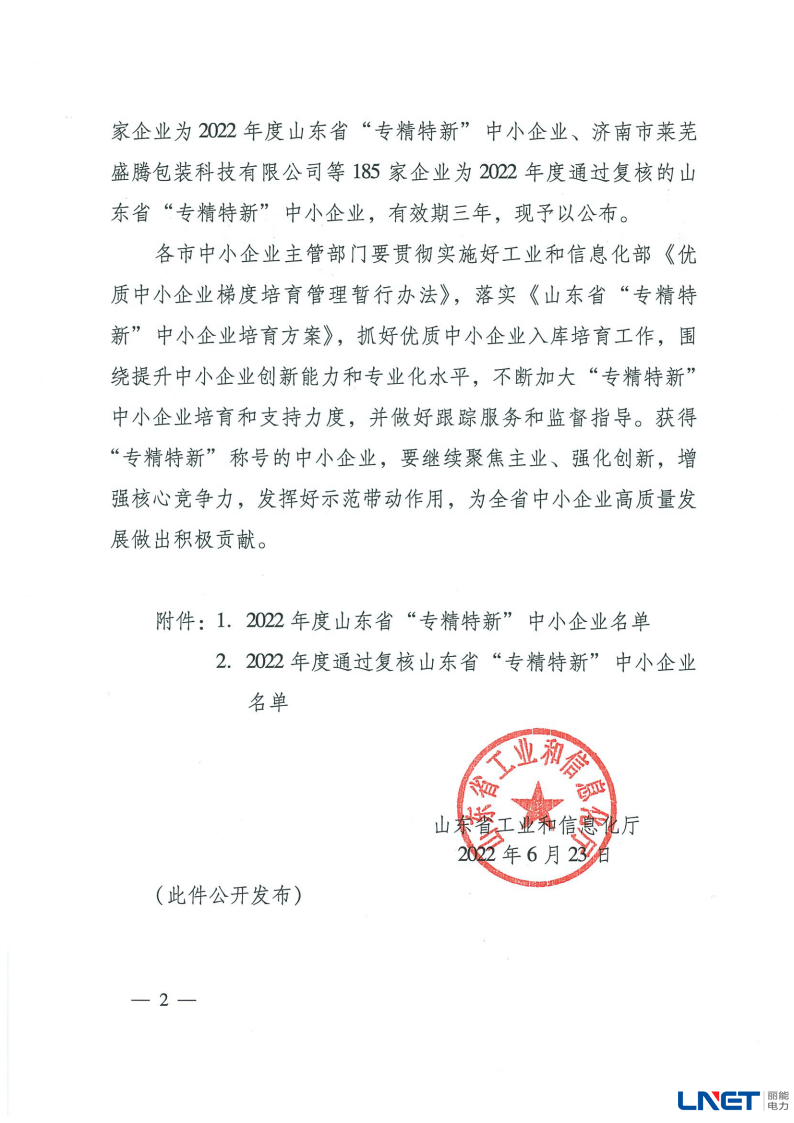 山东省“专精特新”中小企业-山东丽能电力技术股份有限公司