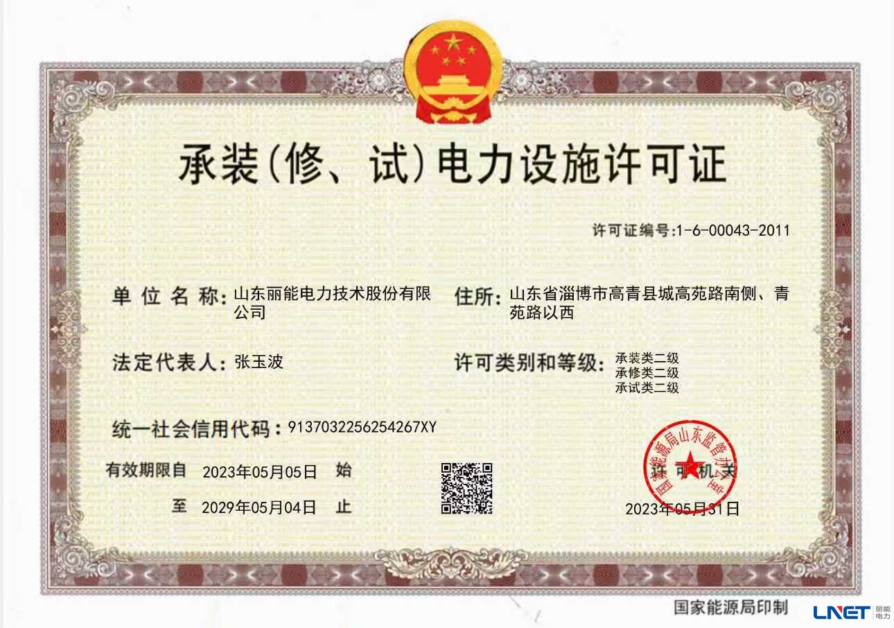 承装(修、试)电力设施许可证-山东丽能电力技术股份有限公司